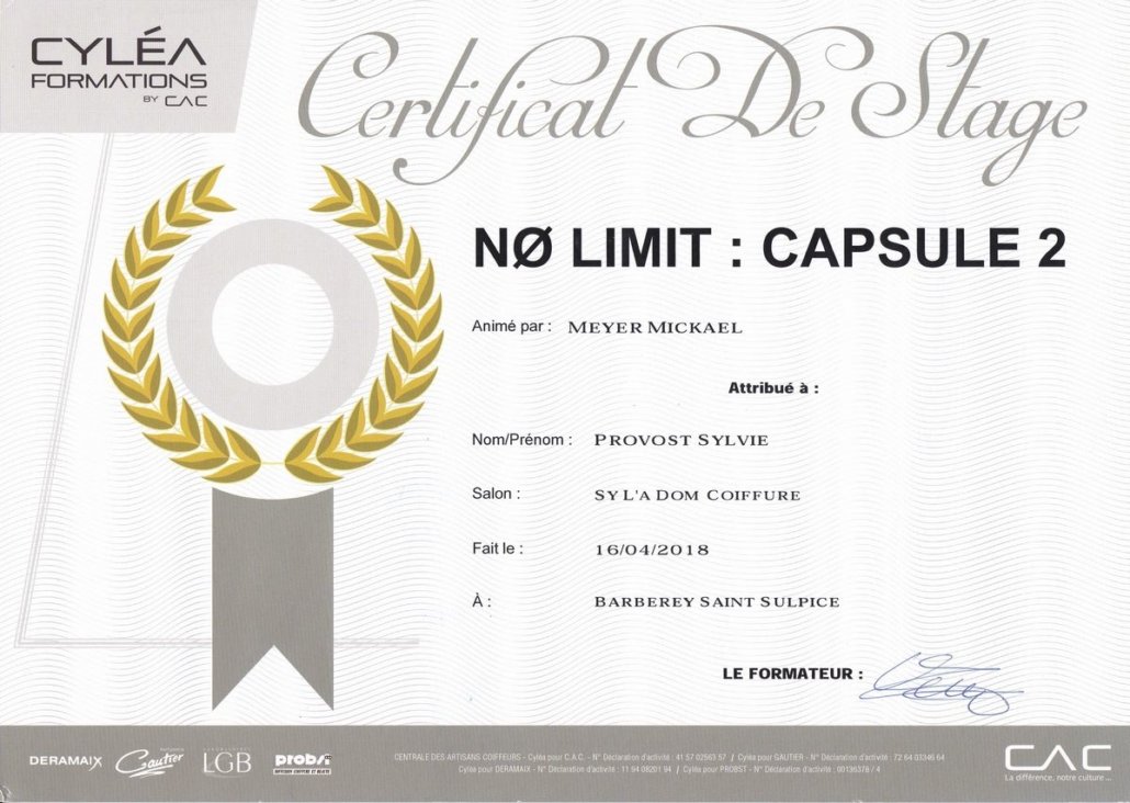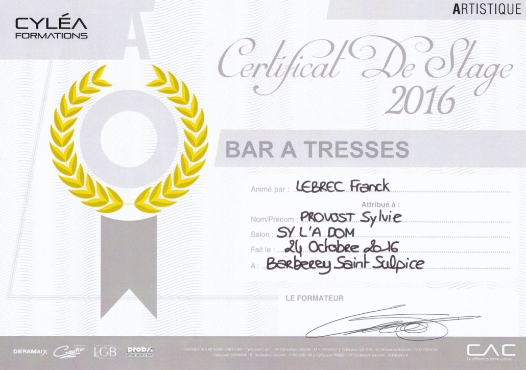 - Brevet de Maîtrise Coiffure